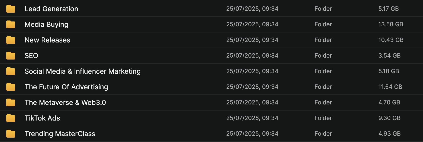 400+ sessions from 2023 conferences, weekly updates, Seth Godin creative academy, Tara Zirker FB mastery, UGC/TikTok pro tips, AI CRO tools.