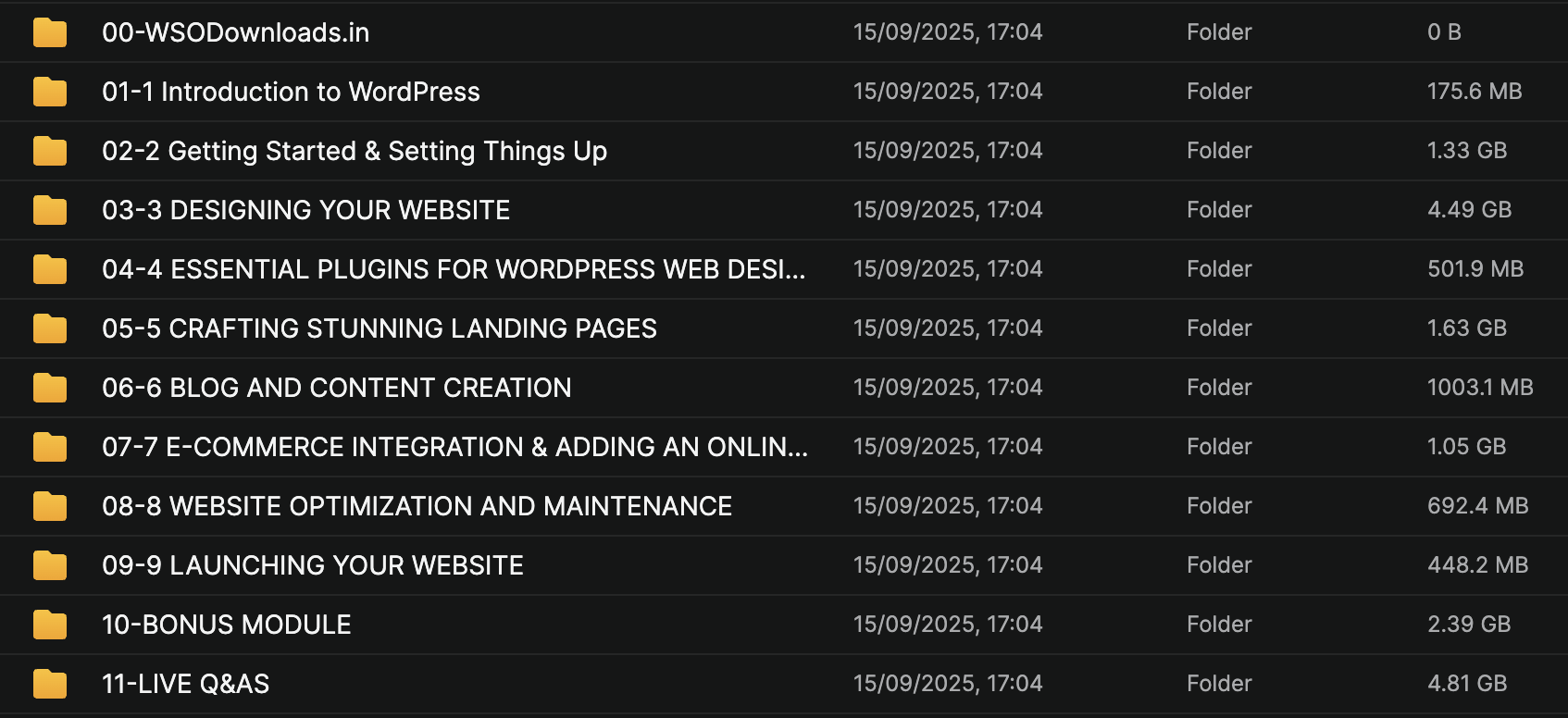 The program unfolds across 12 core modules structured for rapid progress: Module 1 covers foundational setup (hosting, domains, initial installs); Modules 2-4 dive into themes, customizations, and Gutenberg mastery; Modules 5-7 tackle SEO, speed, and security with live demos; Module 8 introduces WooCommerce for stores; Modules 9-10 focus on monetization via memberships, affiliates, and ads; Module 11 teaches agency scaling and client acquisition; and Module 12 wraps with advanced automations, AI integrations, and a capstone project to build your portfolio site—all reinforced with quizzes, homework assignments, and 1-year update guarantees to keep you ahead of platform shifts.