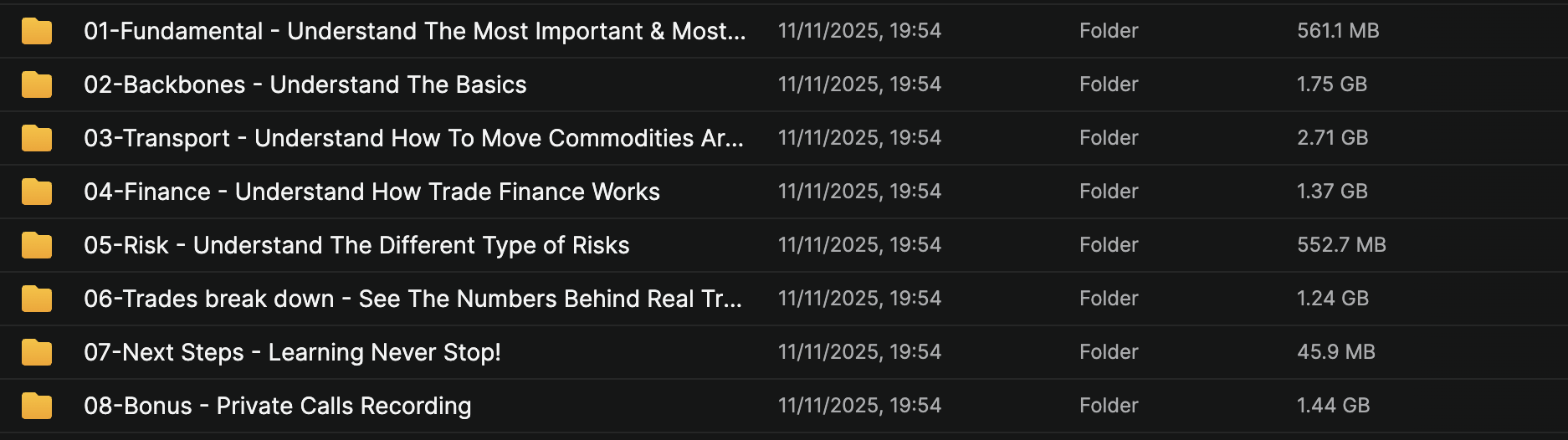 In addition, you’ll get an extra bonus module with a ever-increasing recording of private calls with important commodity players.