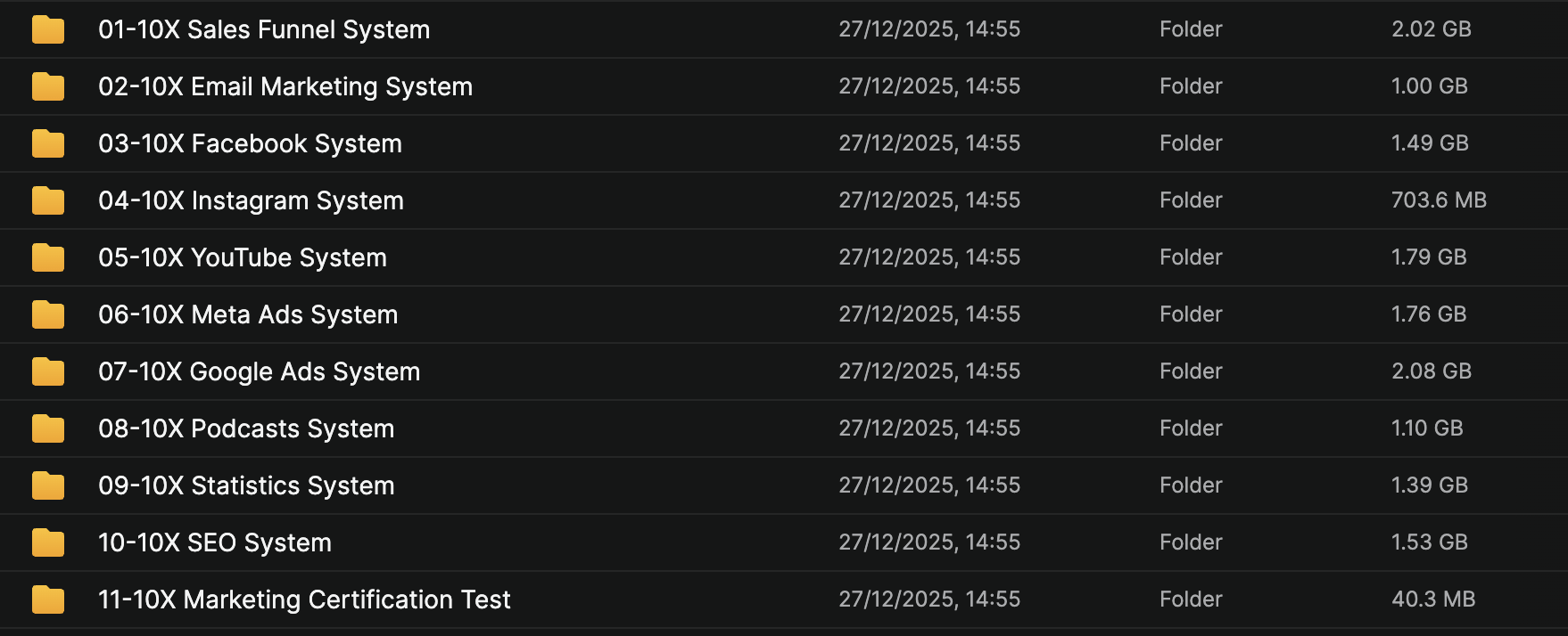 - The Grant Cardone 10X Marketing Mega Bundle teaches you to scale any business 10X through proven systems for sales funnels, podcast launches, email automation, Facebook/Meta ads, Google Ads, Instagram growth, SEO dominance, YouTube virality, and performance stats tracking—delivered via Grant's no-BS frameworks used to build his $5B empire. You'll master psychology-driven campaigns, swipe-file copy for massive leads, flowchart blueprints for ops, and automation to close deals predictably, turning solopreneur hustles into multimillion revenue machines without trendy hacks. Perfect integration for your digital marketing, course reselling, and trading content, with real-world playbooks for TikTok funnels or affiliate scaling.