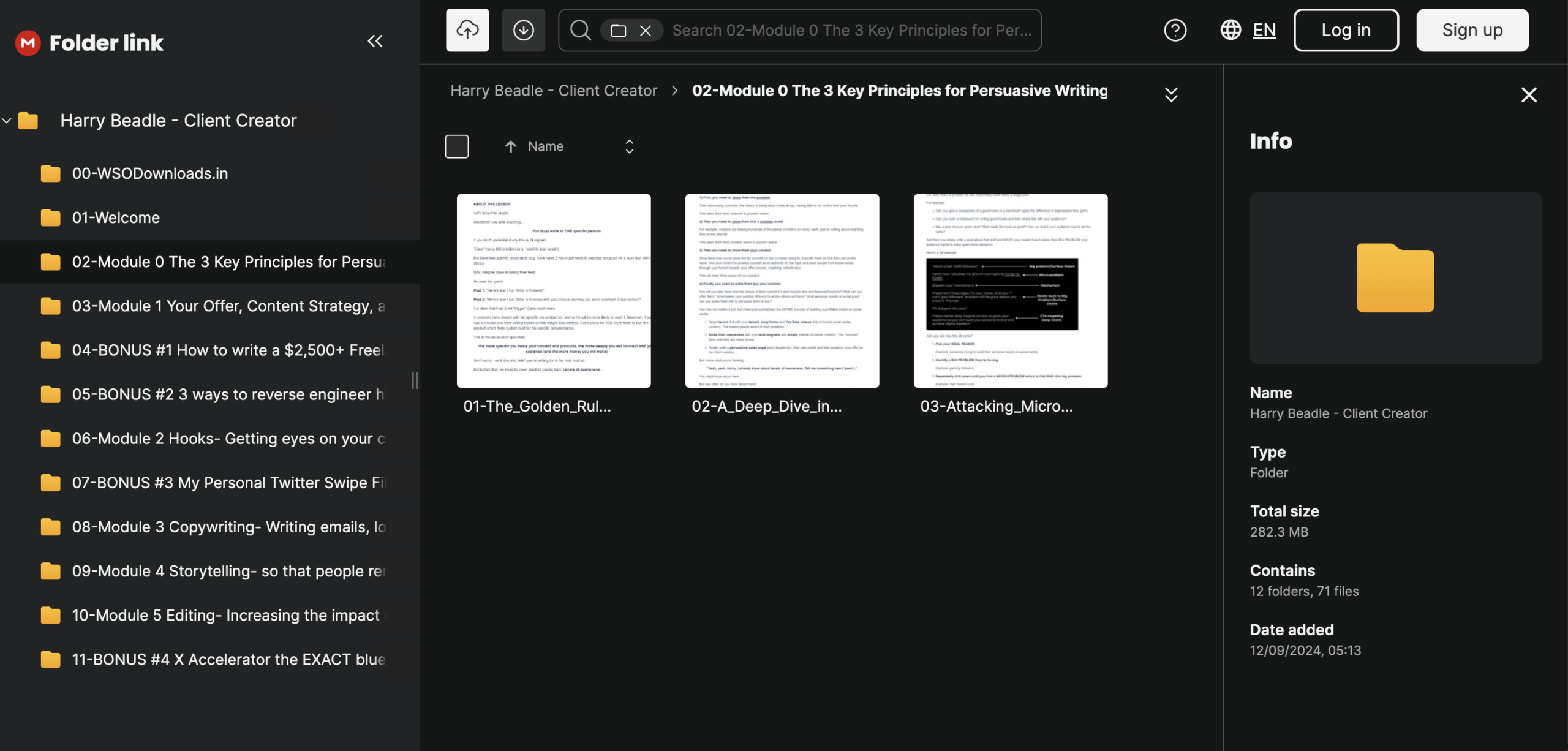 • In Harry Beadle’s Client Creator Download, participants master crafting bulletproof high-ticket offers ($2K-$5K) using a 7-step system, building authority through sales-driven content strategies on platforms like X/Twitter, and attracting inbound leads without case studies. The course covers hook-writing formulas for viral impressions, storytelling frameworks to turn followers into loyal buyers, and copywriting techniques for emails, sales pages, and proposals that close deals effortlessly. Learners also gain systems for sales pipelines, lead tracking via Notion templates, and scaling to 3-4 workdays per week by nurturing buyer audiences.