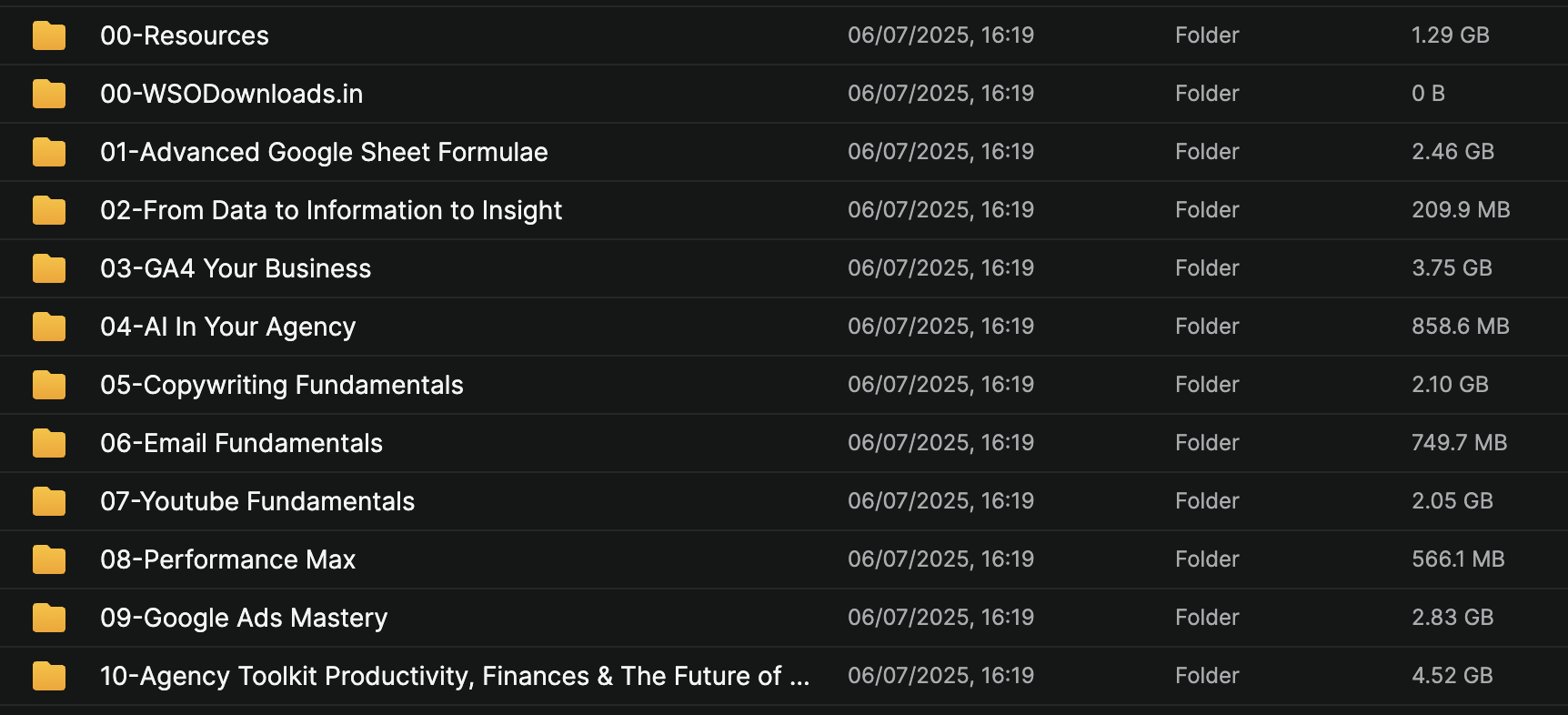 Four recorded sessions, practice files/scripts, nine bonus courses, GPT support bot, community, certification, and optional VIP coaching—everything to automate and excel in Google Ads data handling.