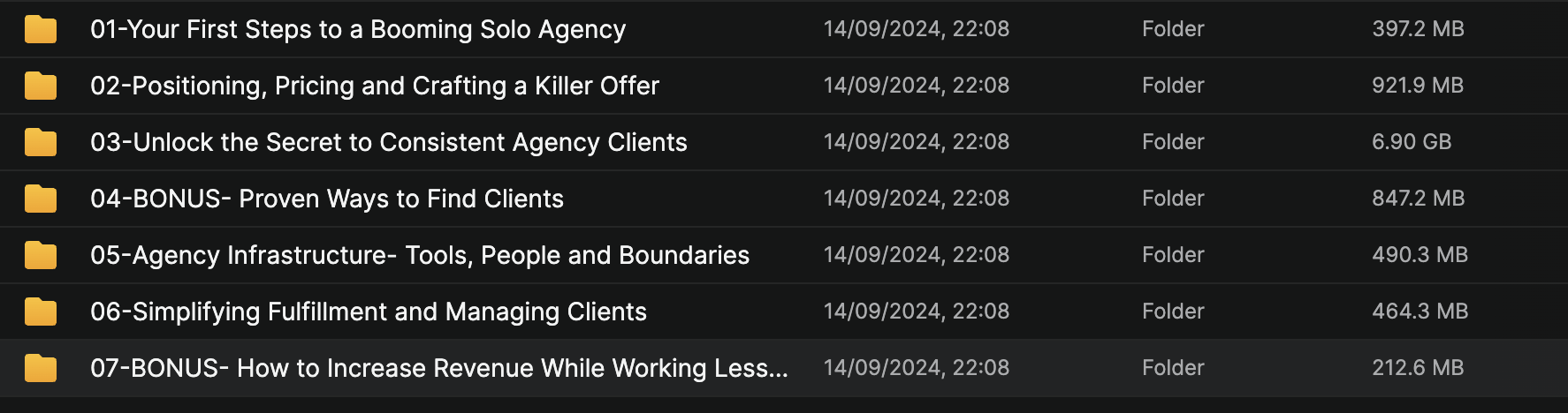 6 progressive modules + bonuses: Foundations/models (1), positioning/pricing/offers (2), demand/pipeline (3-4), infrastructure/tools (5), fulfillment/clients (6), scaling bonuses (7-8)—hands-on with templates/homework; 6-10 weeks at 5 hours/week fitting forex screens/content creation.