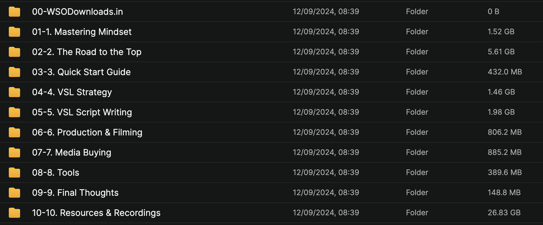 - Peter Kell's VSL Masterclass Download teaches the end-to-end creation of high-converting Video Sales Letters (VSLs), starting with mindset mastery to smash limiting beliefs and visualize ideal lifestyles, progressing to offer selection, scriptwriting via the "VSL God Process," production with B-roll shot lists, and media buying for $100K-$250K campaigns. Participants master tools like the VSL Flow Bible (18 top VSL breakdowns), Kindergarten Simple Pitch for scalable messaging, lead generation from top video ads, and scaling strategies used in $4M/month businesses. Key skills include partnering with authorities, editing playbooks for Mindvalley-level polish, and turning B-level copywriters into weapons for affiliate, dropshipping, or agency offers.