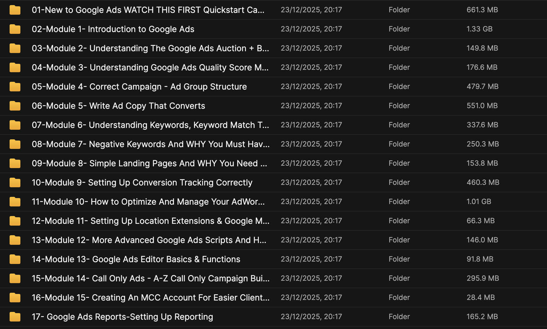• In Rob Andolina's Google Ads Training Academy, you'll master building profitable Google Ads campaigns from scratch through 16 comprehensive modules taught by a Google Premier Partner with $10M+ ad spend experience, covering account setup, keyword research (broad/phrase/exact match types), high-converting ad copywriting, Quality Score optimization, negative keyword strategies, bidding/scheduling mastery, conversion tracking, remarketing lists, A/B testing, and advanced tools like Google Ads Editor and scripts—turning any niche (ecommerce, courses, trading services) into lead-generating machines with 3-5x ROAS. You'll learn templated campaign structures for local businesses or agencies, pain-point focused headlines/CTAs, landing page alignment for max relevance, and ongoing optimization to slash CPC while scaling budgets predictably, all without guesswork or expensive agency fees. By completion, you'll confidently manage client accounts or your own funnels, integrating seamlessly with TikTok ads or SEO for Munich-based digital empires.