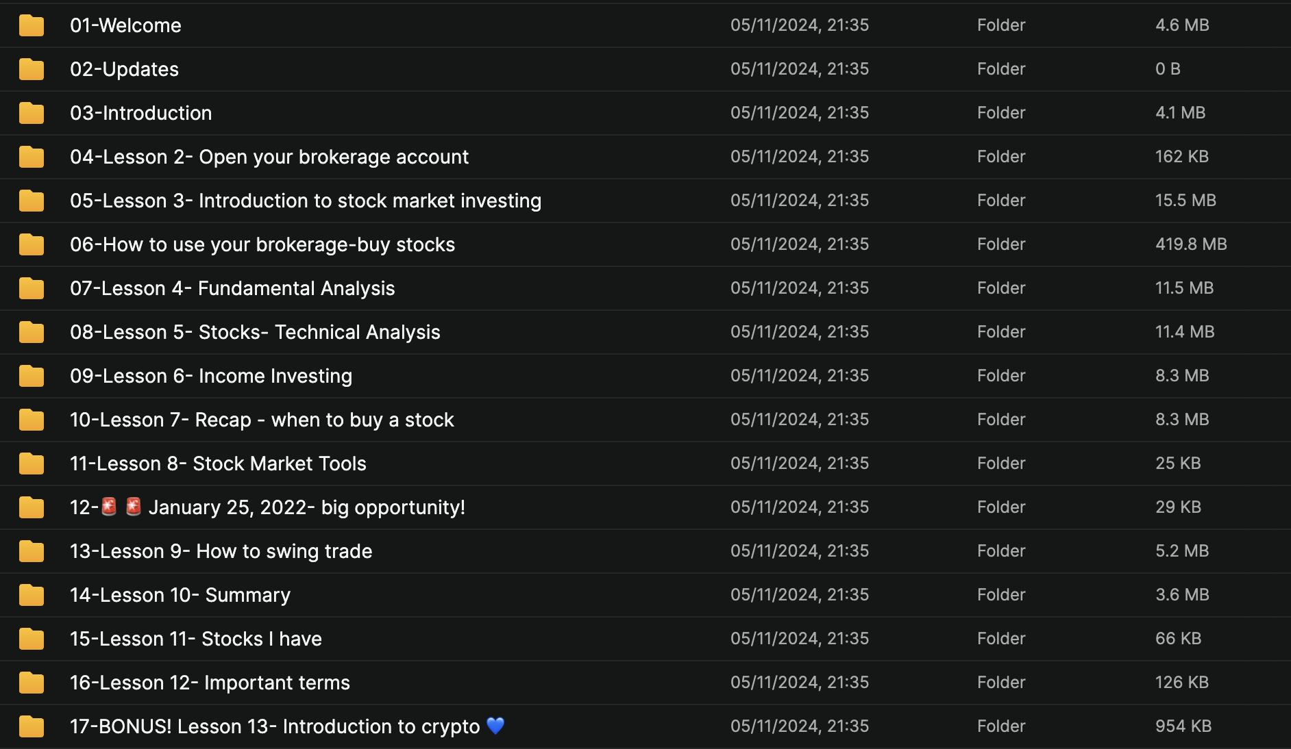 • Lifetime access to this course that teaches you how to invest in the stock market. You will also get access to all the future updates.