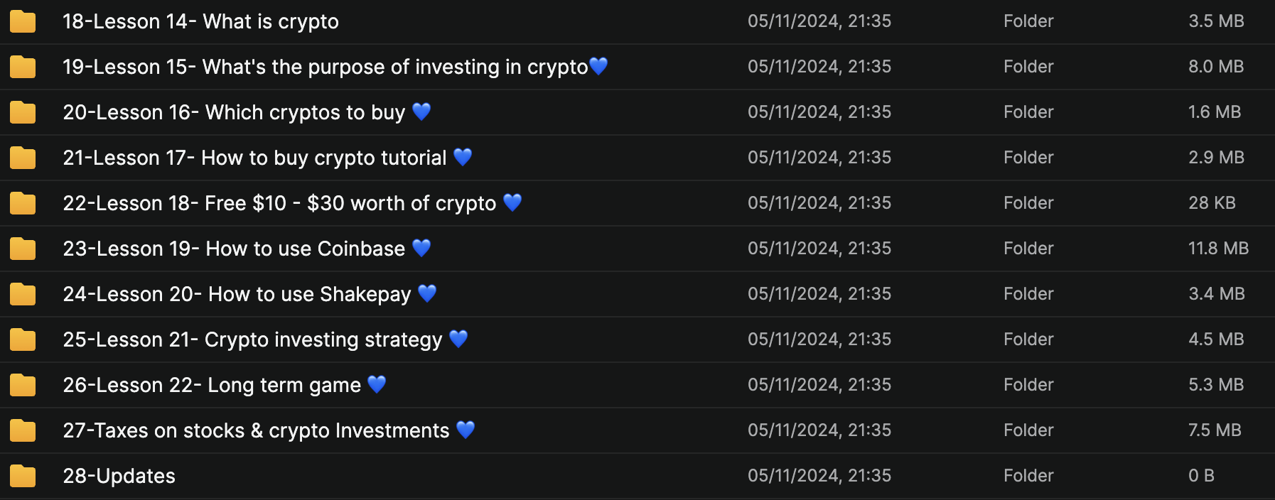 My course is just like you sitting next to me while I show you how to invest in the stock market! It is very detailed and easy to follow. I even added a bonus section which teaches you how to buy cryptos such as Bitcoin and Ethereum! This course offers so much value for such a small price!