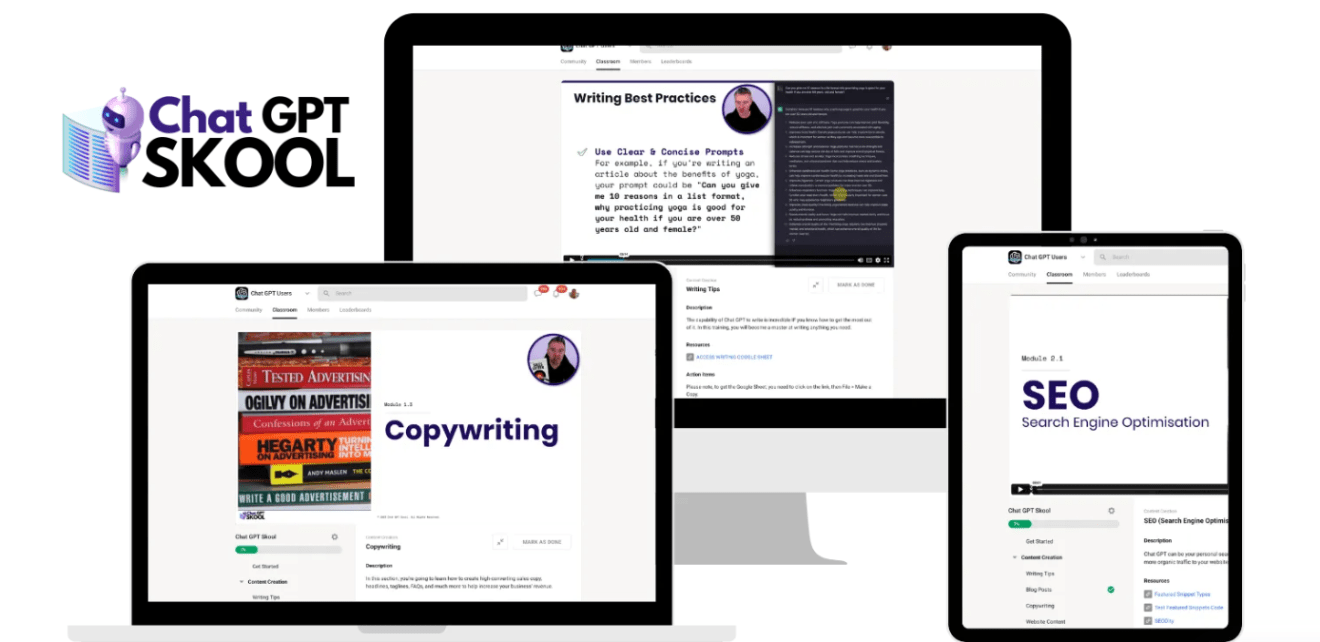 The Jason West – ChatGPT Skool is a comprehensive online training program designed to help business owners, freelancers, marketers, and content creators master the use of ChatGPT and AI-powered writing tools to dramatically increase productivity and create high-quality content efficiently. This course covers how to leverage ChatGPT for a range of tasks including blog posts, sales copy, email newsletters, social media content, SEO writing, customer service, coding, and more through practical real-world prompts, frameworks, and strategies.